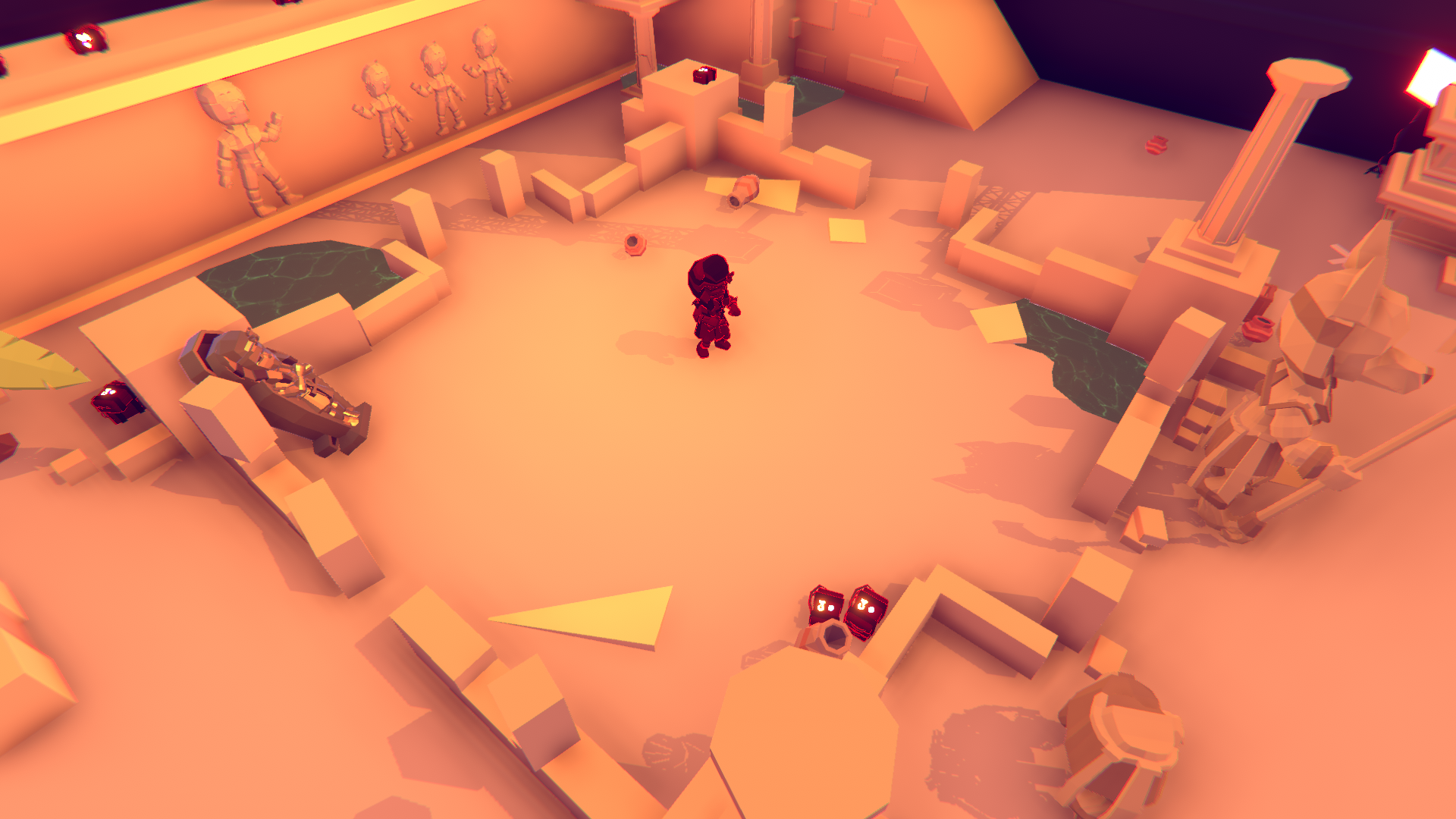 Neutral area teases out the differents moods of future areas (screenshot statue / egyptian area)